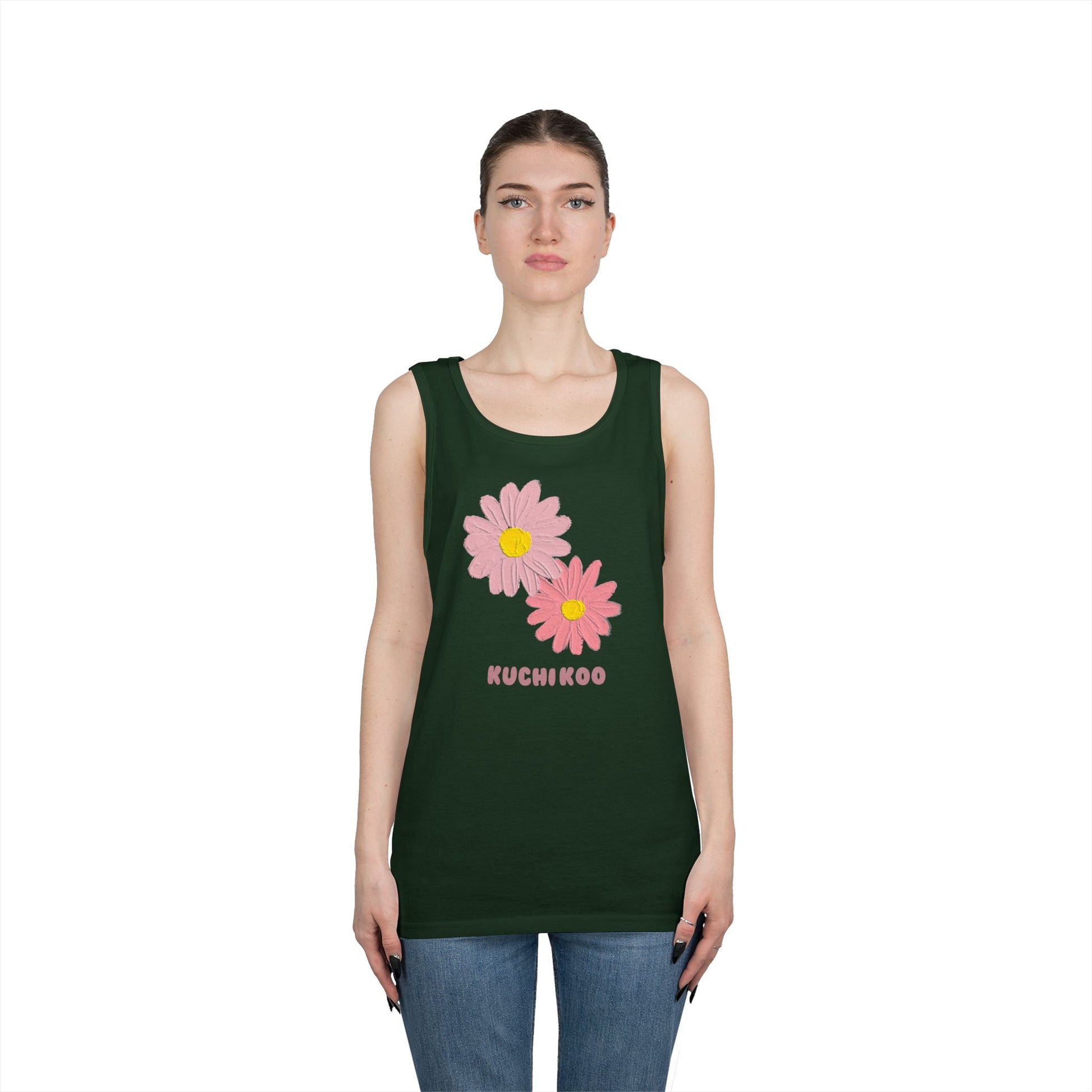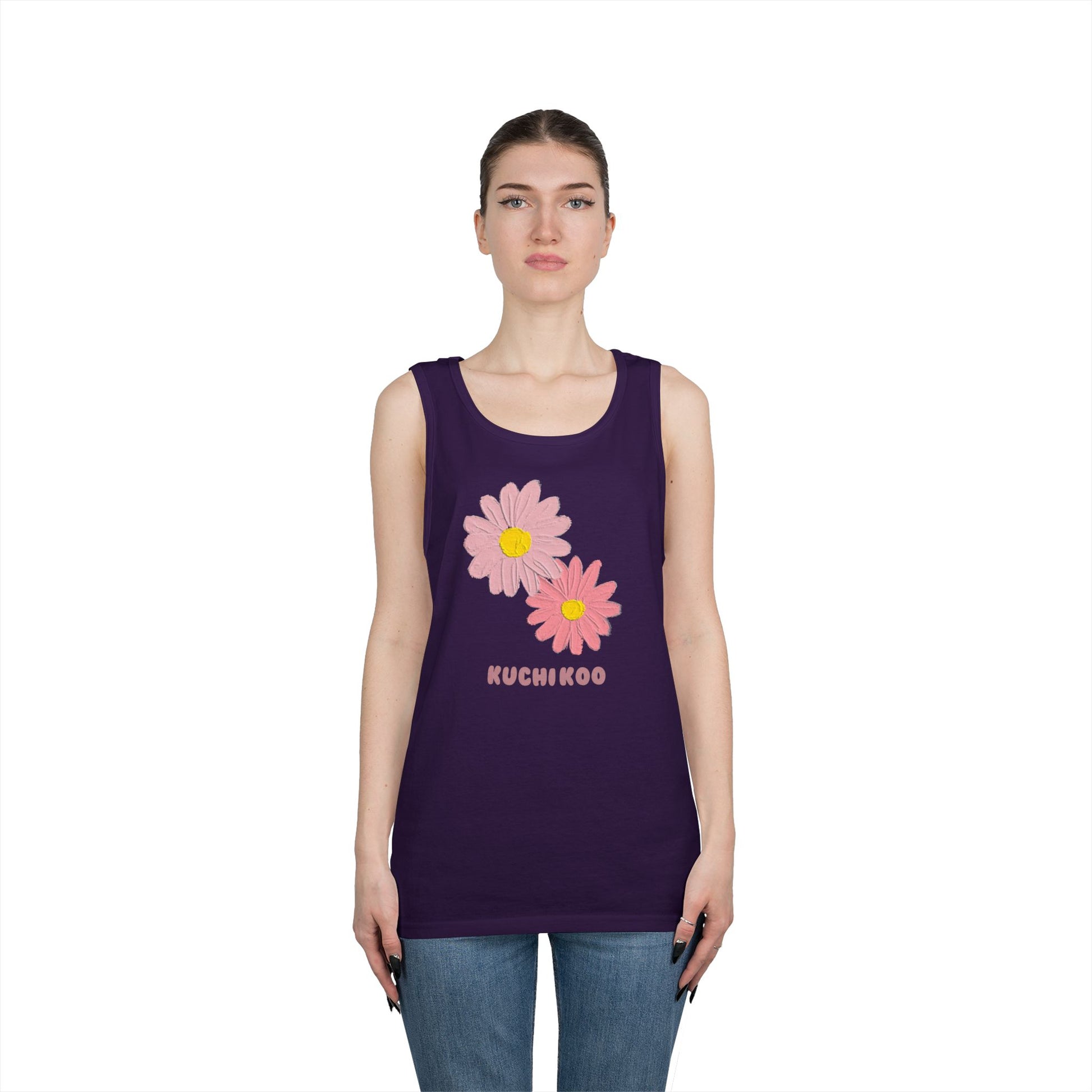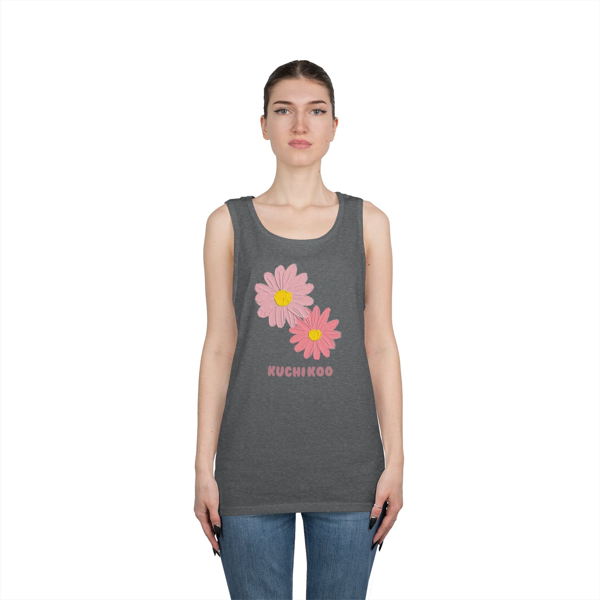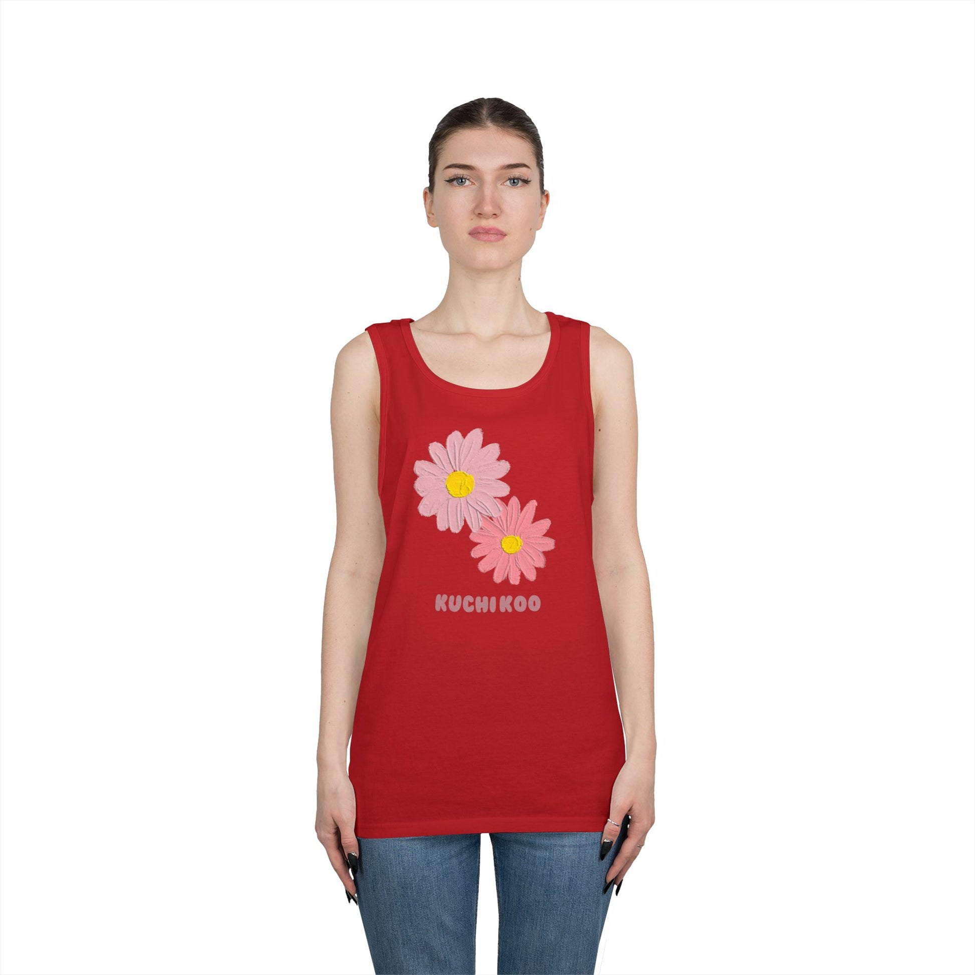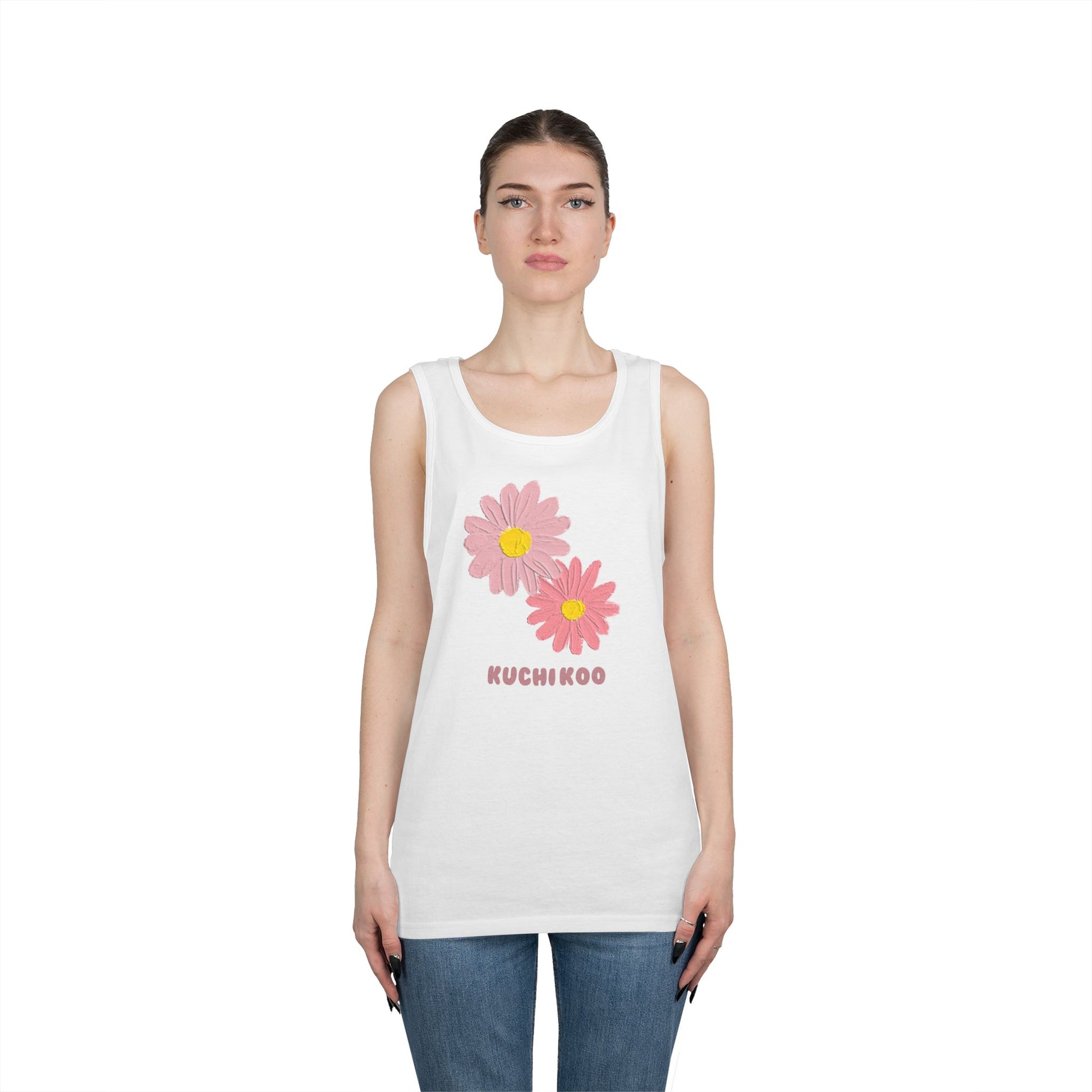 KUCHIKOO Floral Unisex Heavy Cotton Tank Top - Casual Summer Wear
